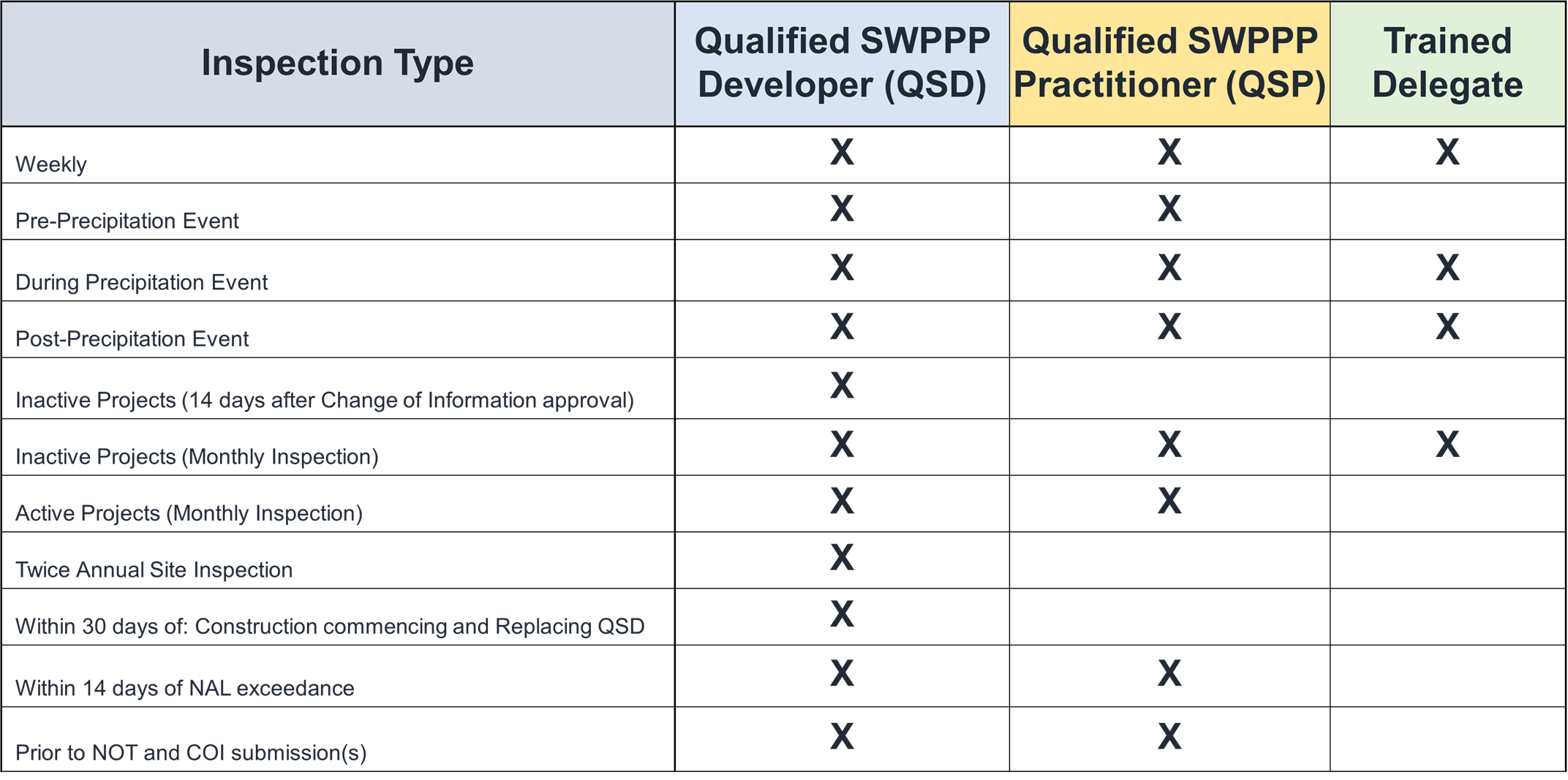 - QSPs must now perform monthly site inspections and pre-Qualifying Precipitation Event inspections.